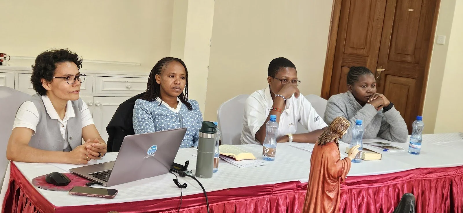 Sr. Rosa Sousa, Mary Mutunga, Christine Momanyi and Felister Kioko listening to one of the young women sharing her vocation journey
