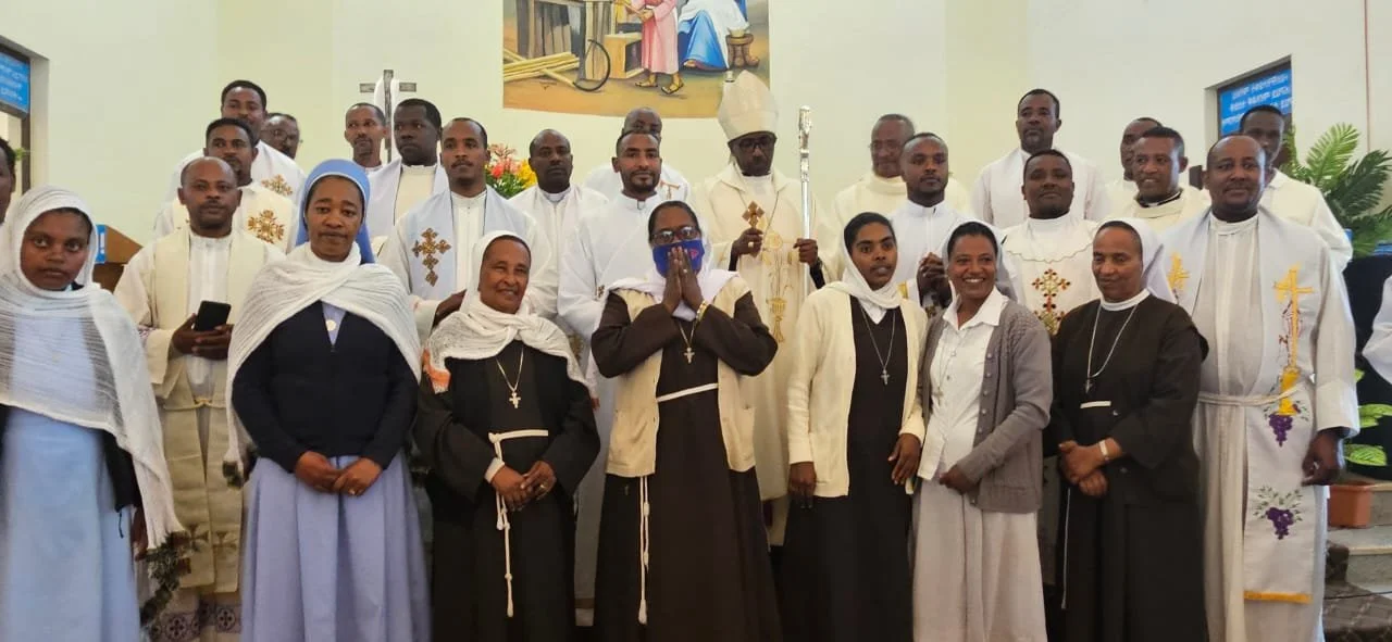 On the 6th of December, Sr. Amarech Lefamo and Sr. Evarlyne Ndeti joined in the Eucharistic celebration of the newly ordained Deacons, Edlam WoldeGebreal and Bruk Mathewos, in the vicariate of Hosanna, Ethiopia. This significant occasion drew a diverse group of attendees, including religious sisters and brothers, priests, Bishop Seyoum Fransua, the parishioners of St. Joseph Cathedral and invited guests.