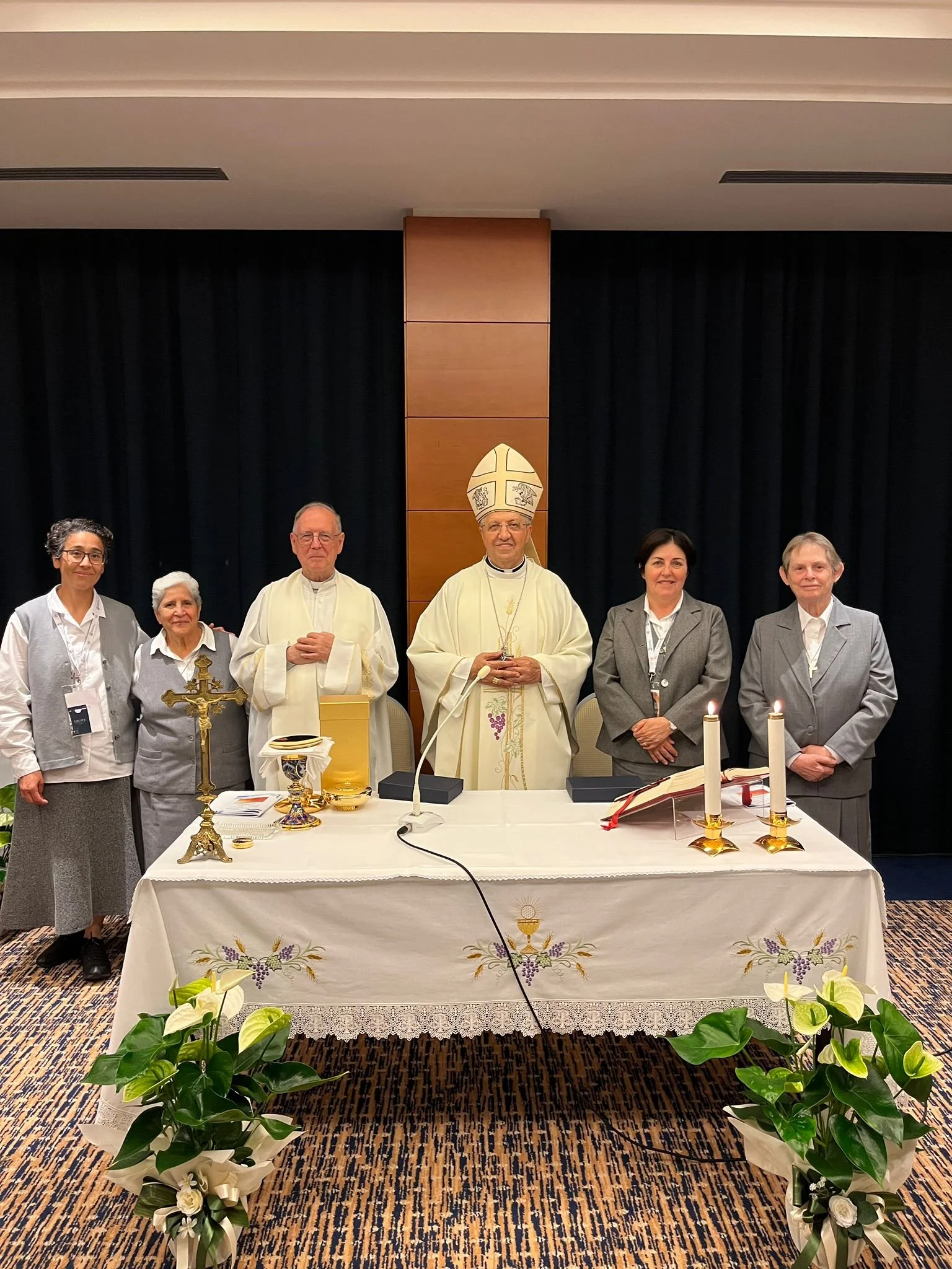 Group photo of our General Council; From R-L Sr. Stella Maris Elena, Sr. Maria Eliane Azevedo Da Silva, Sr. Gilda Mendoza, and Sr. Patricia Godoy together with Bishop Maurizio Malvestiti and Fr. Jose Cristo Rey Garcia Paredes.