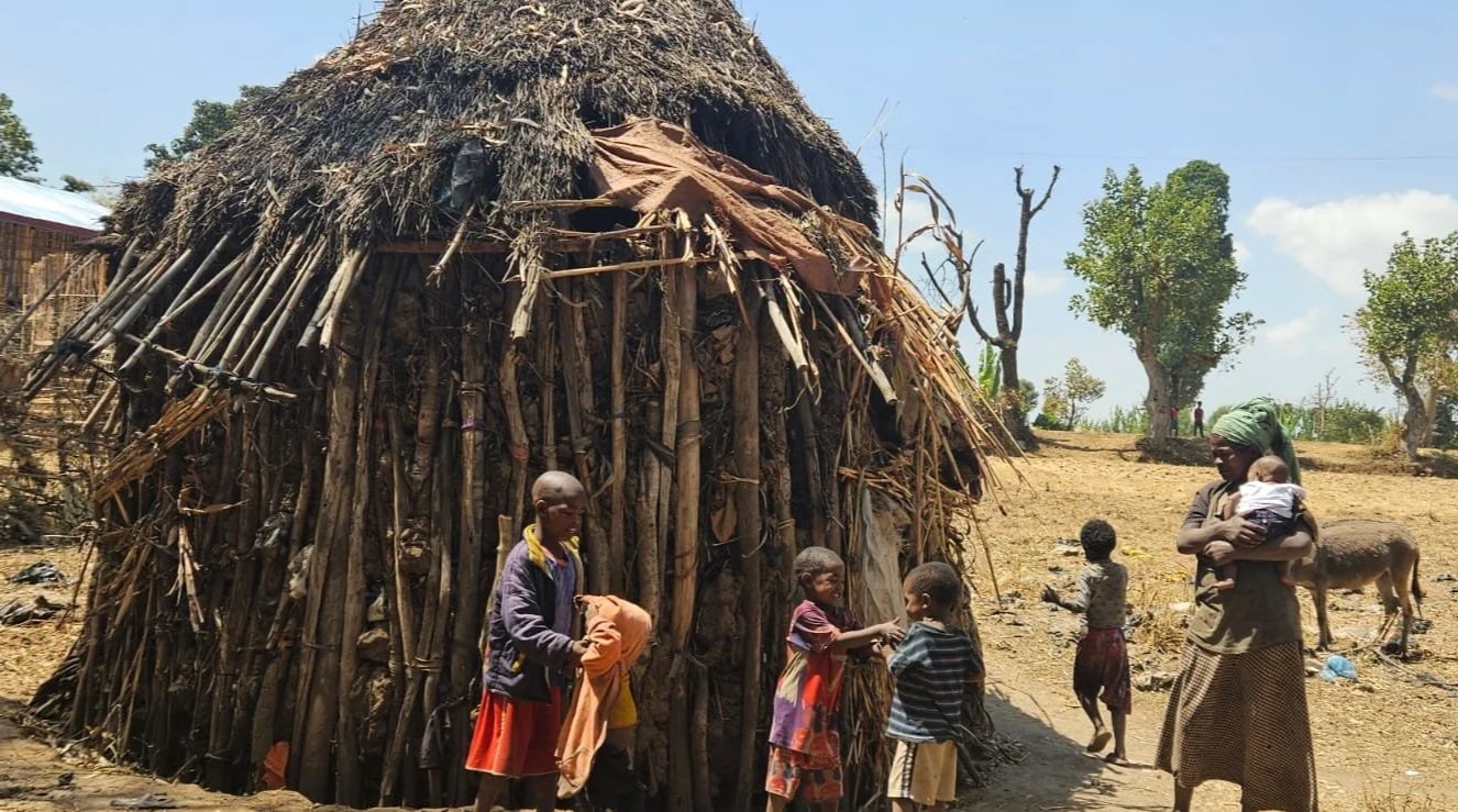 Ergicho Abure and his wife, Kibinesh Ergicho, are blessed with four children, two boys and two girls. Their youngest is just four months old. This family of six resides in a traditional rounded wooden hut that is on the brink of collapse. Without immediate attention and support, this family faces the risk of living without a secure roof over their heads.